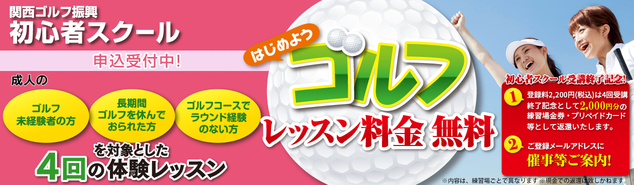 *「ゴルフ振興初心者スクール」の受講は、おひとり様 全会場の中から1会場のみの1回となります。